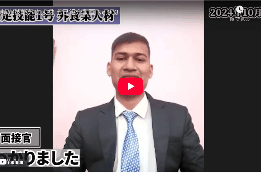 この男性は、独学で日本語を学びながら飲食店での経験を積んでいる、努力家な応募者です。家族が先に日本にいるという背景もあり、日本での就労意欲は非常に高いです。最終的に「シェフになりたい」という明確なキャリア目標を持っており、前向きで真面目な人柄がうかがえる面接内容となっています。
